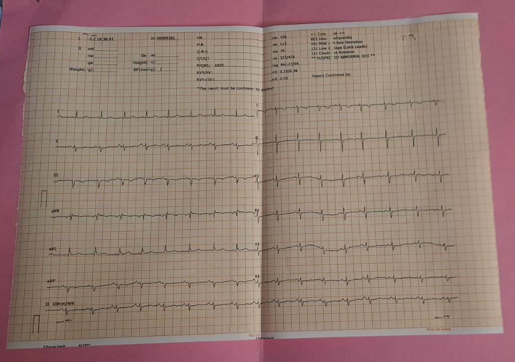 Blood pressure : 120/80 mmhg taken in supine , rightness brachial artery.